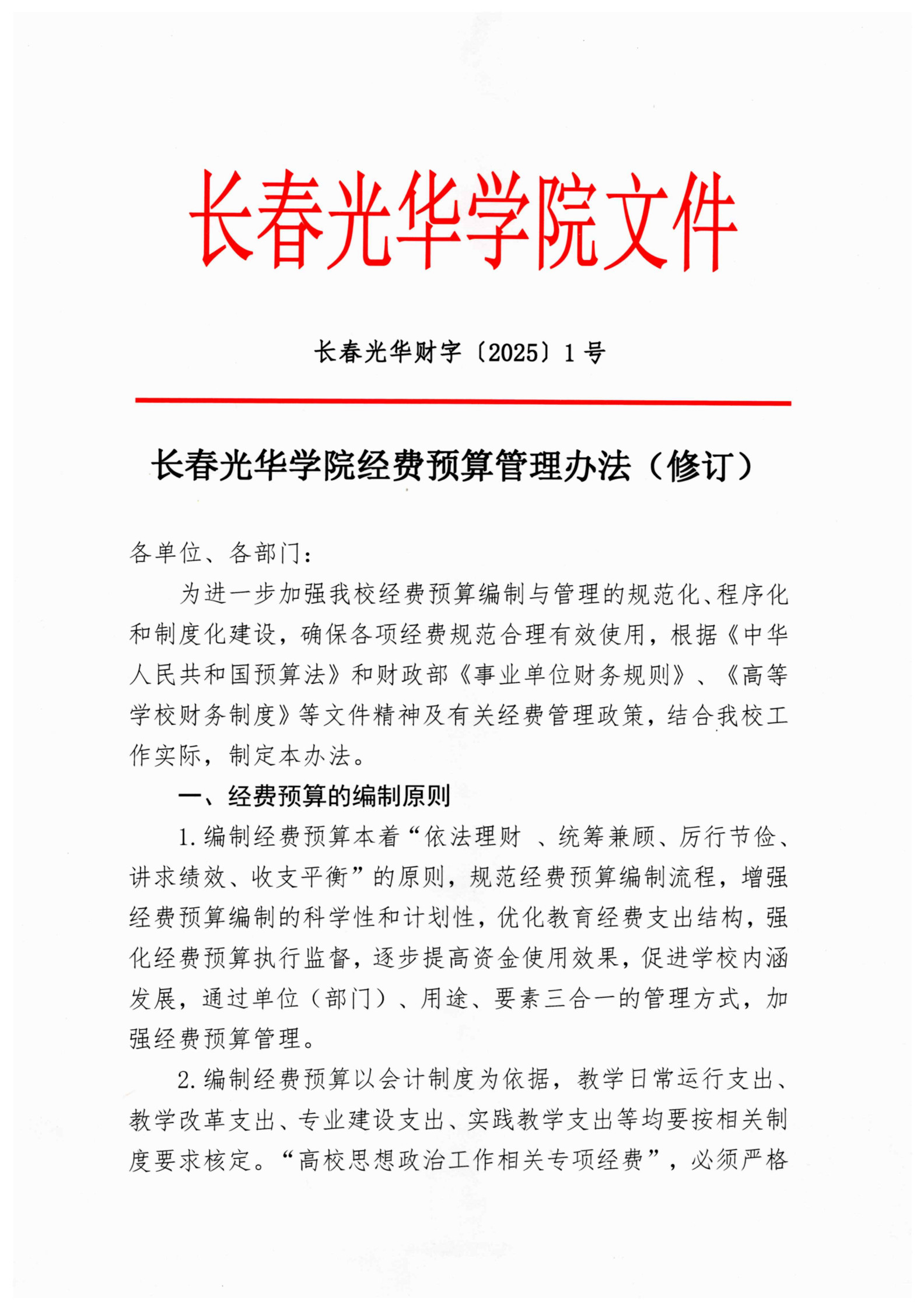 长春光华学院经费预算管理办法(修订)